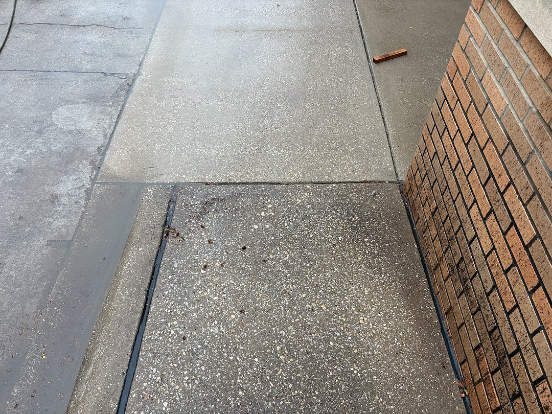 The transformation was immediate. Years of buildup came away in a matter of minutes, revealing much cleaner concrete underneath. The sidewalk and wall looked refreshed, and the overall entrance felt brighter and more welcoming. This project showed that even older concrete can be brought back to life with the right treatment and surface cleaning.